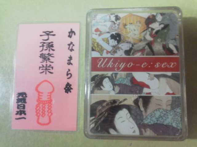 写真は、些かリアルですが、1と2が多産豊穣のシンボル、3はお土産に購入した春画のトランプ(←○○はちゃんと消してあるw)と、おまけの御守り。