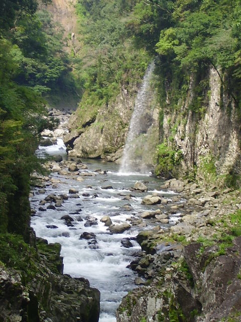 高千穂峡 車で行けば、あっと言う間なのですが、ここは日頃の運動不足解消も兼ねて、ちょっとハイキング気分で遊歩道を歩く事にしました。 車道の途中から遊歩道に入って、歩く事暫し。。 こんな景色が♪♪