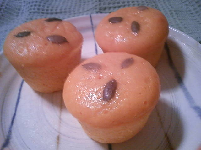 …何だか…ふわふわしてそれなりに美味しいけど、南瓜の蒸しパンもどきな代物になってしまいました。。